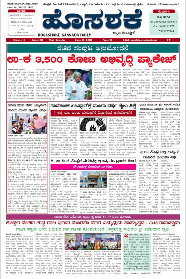 Tags: CM karnataka news belagaviHosashake daily news e paper KarnatakaKaranatak koppal news paper Hosashake dailyKoppal DC news at HosashakeKoppal Gavimath news HosashakeUttar karnataka newsಕೊಪ್ಪಳ‌ ಜಿಲ್ಲೆ ಕರ್ನಾಟಕ ಹೊಸಶಕೆ‌ ಕನ್ನಡ ದಿನ ಪತ್ರಿಕೆಬೆಳಗಾವಿ ಚಳಿಗಾಲದ ಅಧಿವೇಶನ ಸುದ್ದಿ