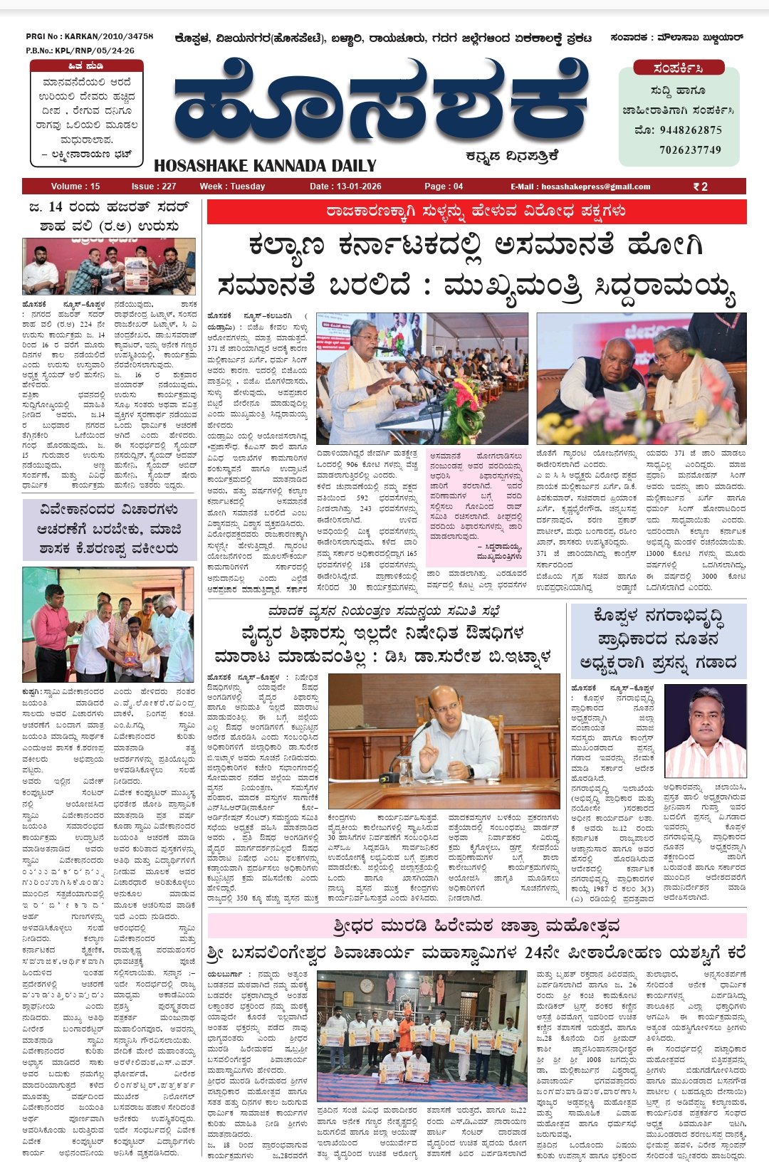 Tags: CM siddramayy news Hosashake dialyDaily news epaper hosashakeGadag koppal raichur kalaburagi vijayanagar balleryGangavathi news HosashakeHosashake Daily news Paper Koppal KarnatakaHosashake epaperKaranatak koppal news paper Hosashake dailyಹೊಸಶಕೆ ಇಪೇಪರ್ಹೊಸಶಕೆ‌ ಕೊಪ್ಪಳ ಸುದ್ದಿ ಪತ್ರಿಕೆ