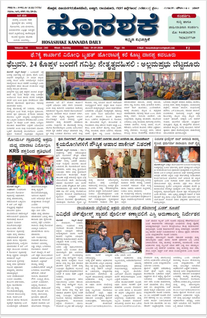 Tags: E paper daily Karnataka Hosashake daily KoppalKoppal raichur vijayangar ballery gadag kalaburgi district newsಹೊಸಶಕೆ ಇಪೇಪರ್