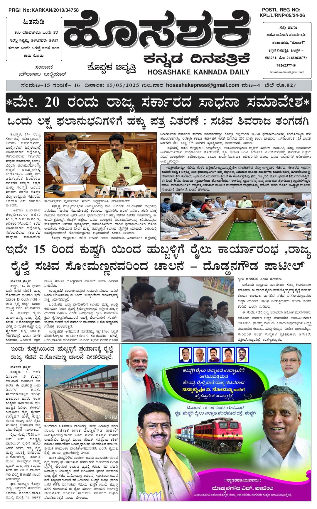 Tags: CM Siddramayy Karnataka newsDaily epaper HosashakeGadag wadi new railwe lineKarnataka koppal daily e papee HosashakeKoppal daily paper HosashakeV Somann centerl ministreಹೊಸಶಕೆ ದಿನಪತ್ರಿಕೆ ಕೊಪ್ಪಳ ಕರ್ನಾಟಕ